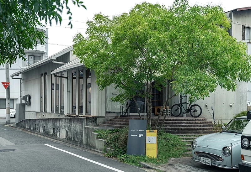 位於 JR 福山站前商業設施「NEW CASPA」一隅的 「nokw」,是昭和町人氣咖啡店 「NOQUO」 的2號店。店內以白色與柔和木紋為基調,營造出舒適沉穩的氛圍,並設有開放式露台座位。