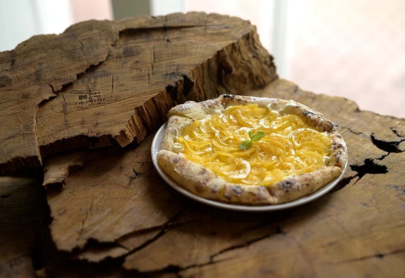 店內推薦使用農家直送、當季的在地水果製作的甜點披薩與飲品。由福山市披薩與晚餐名店「ACCI」的仙波主廚監製的自家製披薩餅皮深受好評,另有每月更換口味的午間披薩可供選擇。