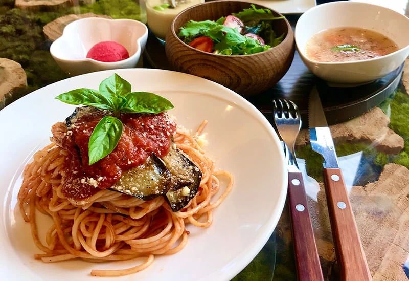 福山市的休閒餐廳 「ヌーヴェルヴァーグ」 主打使用廣島在地食材,以細緻手法呈現道地的法式料理。午餐推薦「今日義大利麵&迷你可麗餅套餐」,包含沙拉、一道料理、蔬菜湯、三款口味中任選的今日義大利麵、可從多種選項中挑選的兩個麵包或一份熱壓三明治,再加上迷你可麗餅與義式冰淇淋,內容豐富、份量十足。晚餐時段則提供單點料理,若提前一天預約,也能享用套餐形式的晚餐。