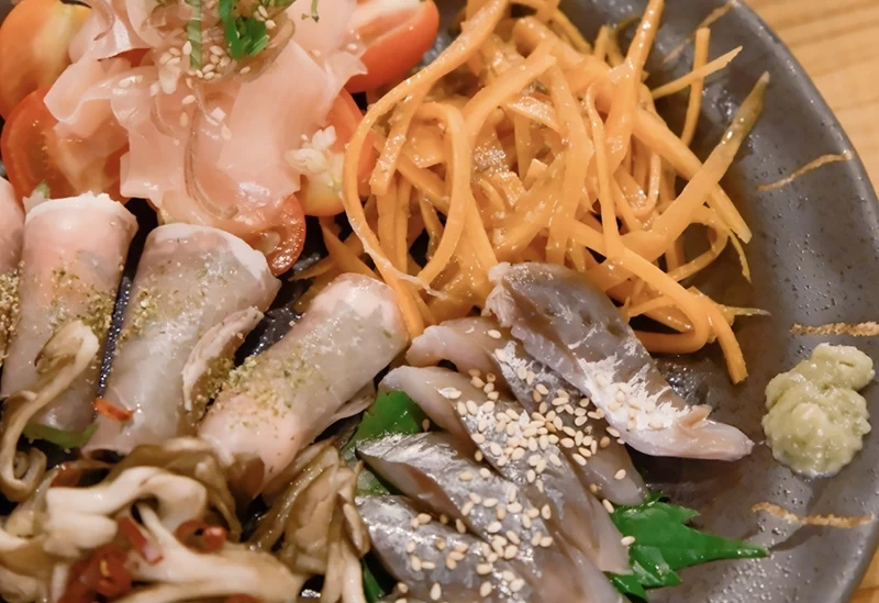從福山站步行約 5 分鐘即可抵達的 「囲肴屋 樹」,是一家能盡情品味瀨戶內海當季地魚與日本酒的居酒屋。店內最自豪的必點料理是以產地直送天然鮮魚製作的生魚片。