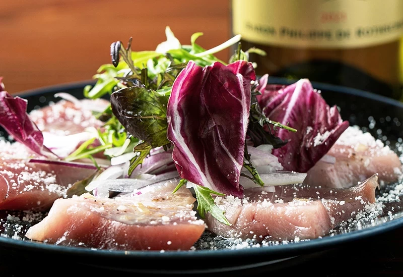 從 JR 福山站步行約 5 分鐘即可抵達的,是一家僅在週五與週六營業的私房餐酒館。店內以溫暖的木質調設計打造時尚氛圍,無論是一人小酌、女孩聚會或宴會,都能自在利用。料理採用店主親自挑選、來自備後地區的當季蔬菜,能品嘗到四季更迭的自然滋味,食材本來的美味更是讓人不禁為之一亮。其中最受推薦的是招牌料理 「憧憬的西班牙蒜油料理」:以雞肉與色彩繽紛的時令蔬菜,加入鯷魚風味的橄欖油慢煮,將美味緊緊鎖住。將麵包浸入香氣濃郁的油汁中享用,更能感受口中瀰漫的香味與濃厚滋味,是款令人回味的奢華佳餚。