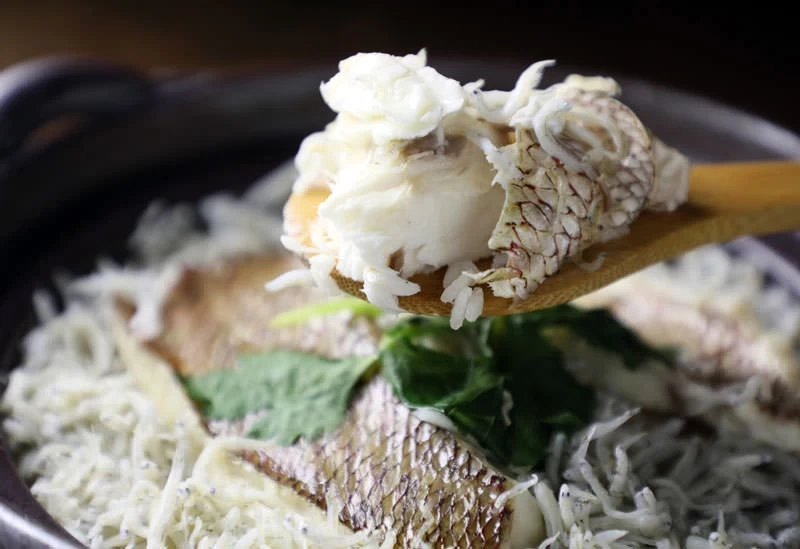 人氣第一的名物料理 「鯛魚素麵」,豪邁使用整條鯛魚,是鞆之浦的經典美食。作法為先將鯛魚炙烤後再煮至入味,吃時將素麵浸入濃郁的鯛魚高湯中,香氣與鮮味令人難忘。另外,奢侈地使用七片虎河豚魚鰭釀造的 「特濃鰭酒」 也十分推薦。