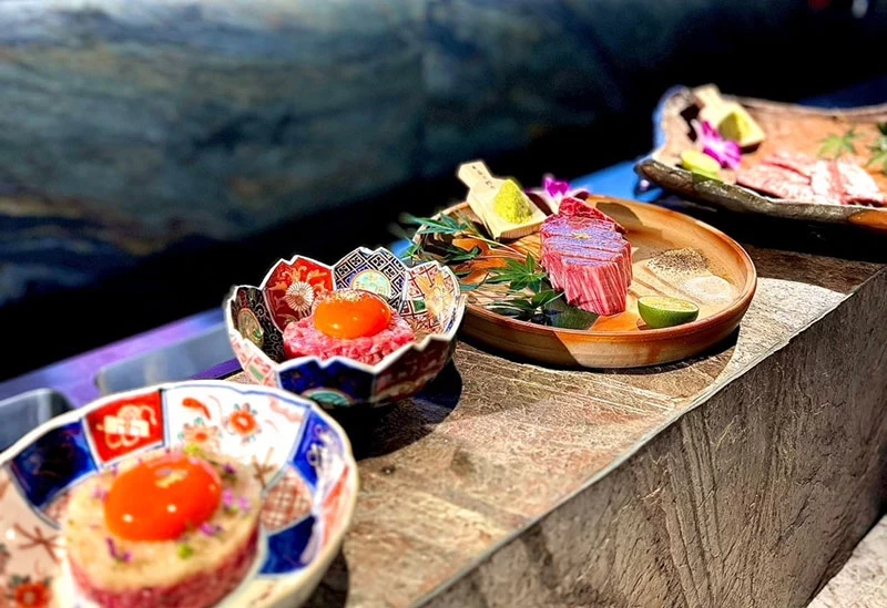 推薦必點的料理包括:以新鮮和牛搭配蛋黃享用、店內人氣第一的 「炙燒和牛美人拌牛肉」,能以炙燒方式品嚐新鮮肝臟的 「和牛炙燒鮮切肝」,以及能充分感受和牛深層美味的 「和牛握壽司三貫」。此外,店家也提供乾冰、仙女棒、寶箱等多種慶祝用道具,非常適合用於生日或驚喜活動。
