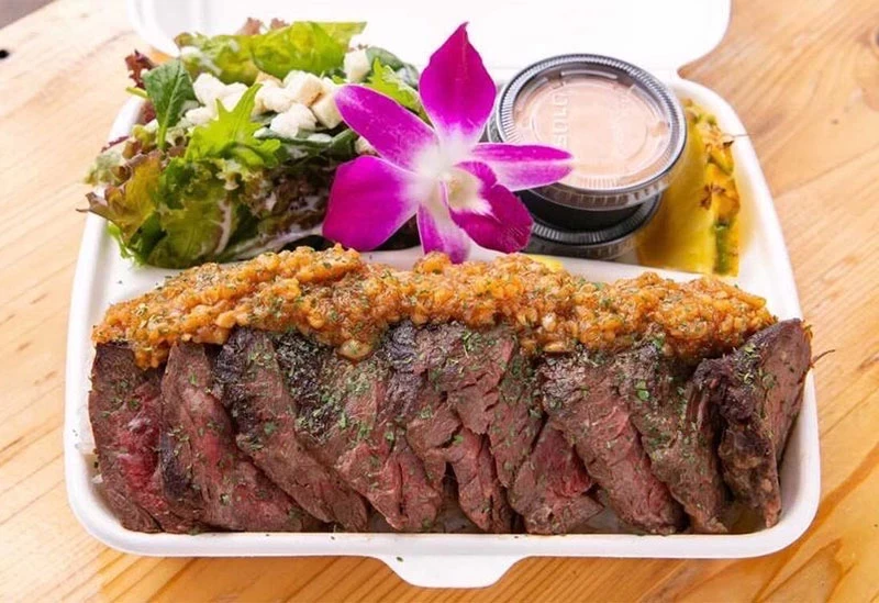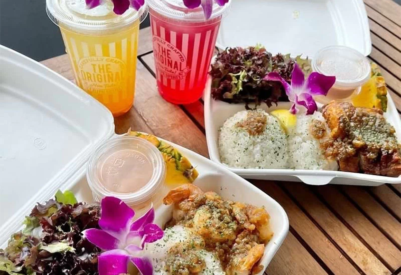 以明亮的綠色與木質風格打造、令人一見傾心的 Finger Lickin,是一家夏威夷料理外帶專門店。份量十足、幾乎滿出餐盒的瘋狂牛排,以及大尺寸鮮蝦製成的蒜香蝦,都是讓回訪客人絡繹不絕的人氣美味。可愛點綴的花朵與色彩繽紛的飲品,更為整體增添濃濃的夏威夷度假氛圍。不妨外帶這份深受喜愛的佐世保美食,一邊欣賞佐世保川的風景,一邊悠閒享受吧。