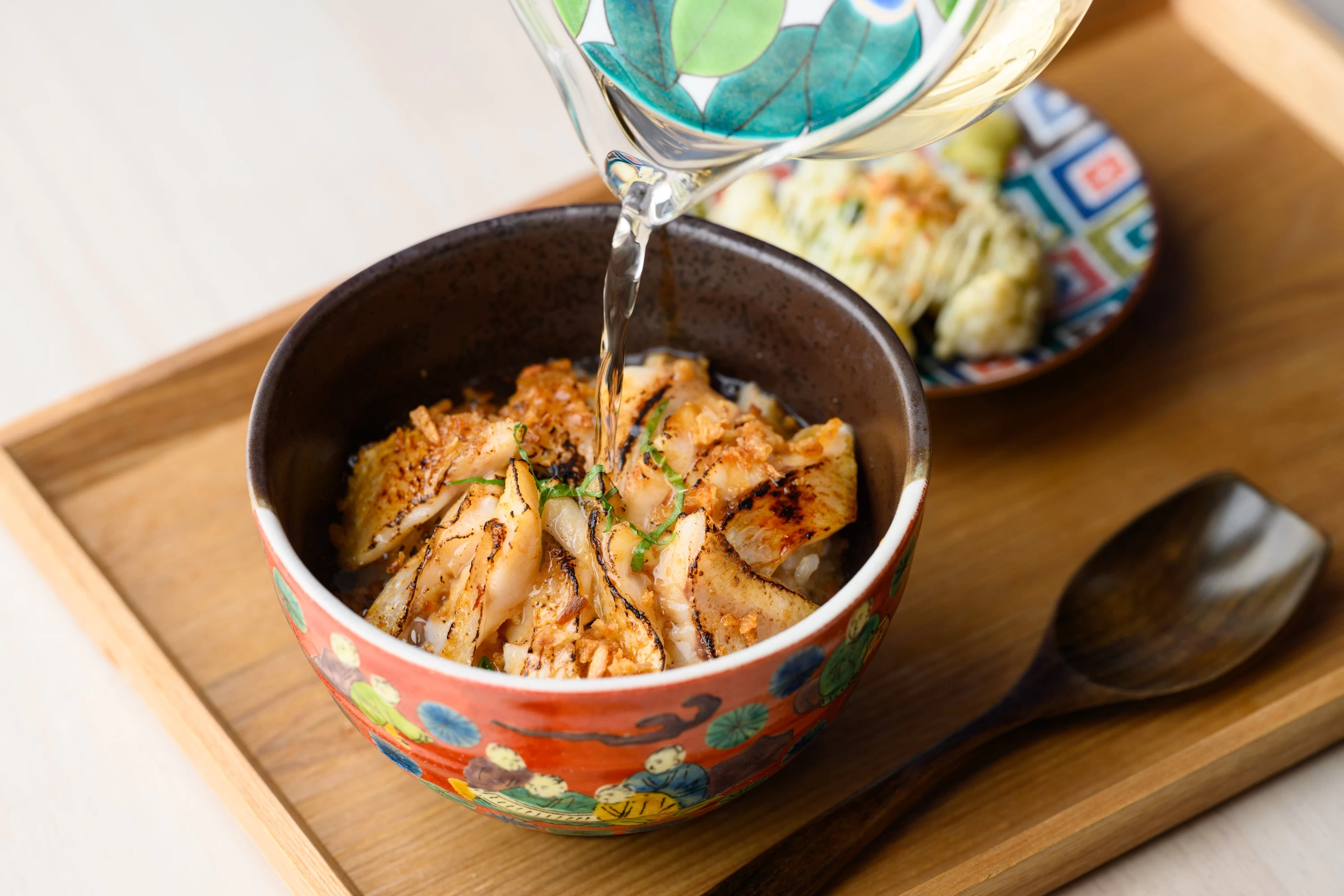 位於 JR加賀溫泉站內的這間咖啡&酒吧,可以讓人輕鬆感受加賀的風情。店內以九谷燒圖案與象徵加賀前田家緣由的群青色點綴,空間明亮華麗,能在此盡情品味北陸的美味。餐點有許多能為加賀旅程增添亮點的特色料理,例如將被稱為「白身魚中的大Toro」的黑喉魚炙烤後,再淋上高湯享用的「黑喉魚茶泡飯」,以及盛裝當季海味的海鮮丼等。此外,「北陸三縣地酒9款品飲組合」也深受遊客喜愛。無論是旅途中稍作休息,或作為行程的收尾,都非常值得前來一訪。