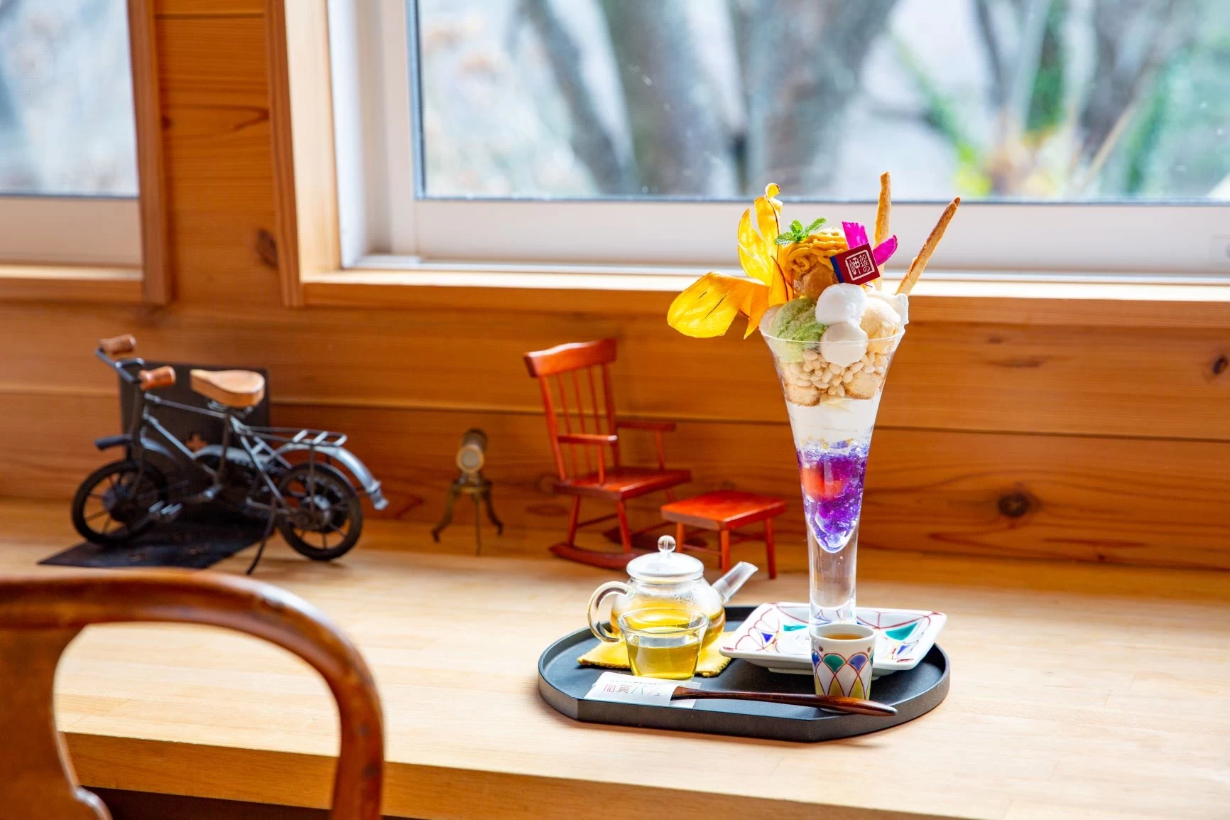 位於加賀市山代溫泉區的「茶寮なか尾」,是一家以手工甜點聞名的咖啡廳。無論是紅豆餡或冰淇淋都堅持自家製作,其中以使用當季水果打造的期間限定聖代最受歡迎,不只味道出色,華麗的擺盤更是視覺享受。店內所使用的器皿,也帶有店主希望為在地文化盡一份力的心意,除了九谷燒與山中漆器外,也選用許多年輕作家的作品。空間氛圍沉穩而愜意,尤其是能眺望庭園的吧台座位,是最受歡迎的特等席。在旅途中,不妨到這裡享受一段能讓心靈慢下來的療癒時光。