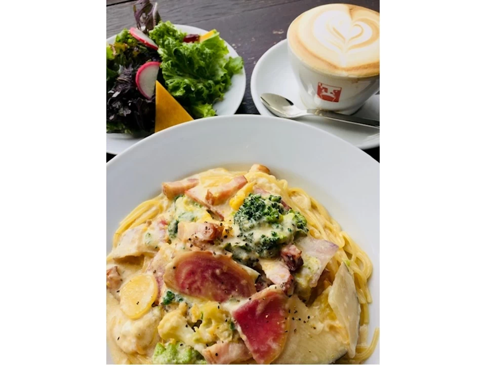 位在鎌倉巷弄之中的「ガラタ」是一家深受在地人推薦的午餐好店。店家從早上營業到傍晚,不僅能作為食堂,也能當作咖啡廳或居酒屋使用,是散步鎌倉途中想休息時的理想中途站。午餐時段提供兩種選擇:超值午餐定食與分享式雙人套餐。午餐定食包含一杯葡萄酒、前菜與義大利麵;而分享式套餐適合兩人一起點,能一同品嚐店內的人氣菜色,非常受到情侶與好友客群的喜愛,一起分享更增添用餐樂趣。