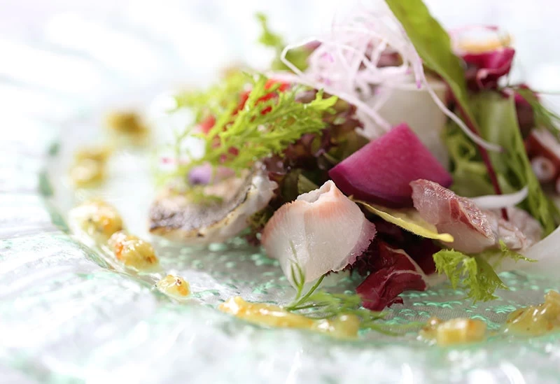 從江之電長谷站步行約 12 分鐘,就能抵達位於「鎌倉公園飯店」內的法式料理餐廳。這裡以嚴選鎌倉與湘南地區的在地食材入菜,打造出只屬於這家店的「鎌倉法式料理」。午餐推薦必點的是「國產牛 × 真鯛雙主菜套餐」。前菜採用店內人氣最高、以新鮮當地蔬菜與地魚製作的「湘南風沙拉」,而主菜則一次品嚐得到肉類與魚類,是奢華又超值的饗宴。除此之外,每個季節也會推出期間限定的特製午間套餐,例如「秋季湘南美味午餐」等,讓人每次造訪都有全新的驚喜。