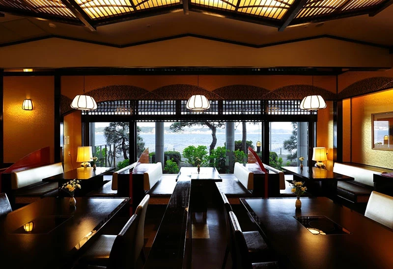 這家店與前一段介紹過的「Pergola」一樣,位於「鎌倉公園飯店」館內,是一家以日本料理與螃蟹料理聞名的餐廳。餐點大量使用鎌倉當地的蔬菜與海鮮,以及來自東京豐洲市場的新鮮鮪魚等旬味食材,能享受到講究四季風味的和食饗宴。午餐菜單選擇十分豐富,包含可品嚐 9 款小菜的「繽紛御膳」、奢華的「松葉蟹 × 時蔬天婦羅蓋飯午餐」、能自由選擇主菜的「招牌自選套餐」、以及「黑毛和牛壽喜燒午餐」、季節限定的「會席料理」等。店內備有多種大小不一的包廂,可依不同需求使用,無論是家族聚餐、慶祝活動或招待客人都非常合適。
