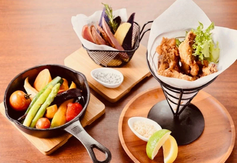 從江之電七里濱站步行約 12 分鐘即可抵達這家餐廳。店內以加州納帕谷北端的小鎮為概念打造,彷彿置身海外般的度假氛圍,讓人一踏進就放鬆身心。這裡的魅力在於,能一邊品嚐嚴選的加州葡萄酒,一邊享受像是墨西哥塔可、義大利麵等各式異國料理。平日限定午餐提供三種主餐可選:「滿滿酪梨的手工玉米餅加州風塔可」、「主廚推薦的今日義大利麵」以及「藤澤產宮路豬烤肉搭配自製佛卡夏」。