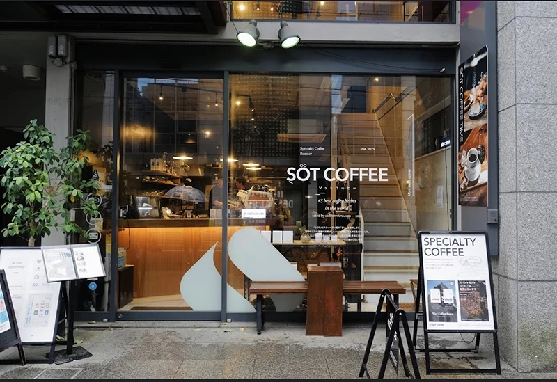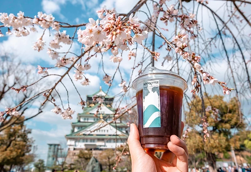 距離大阪城步行約 10 分鐘的 SOT COFFEE ROASTER 大阪天滿橋,是一間以講究烘焙手法、充分引出咖啡豆個性為特色的精品咖啡專門店。店內主打淺焙咖啡,苦味低、風味清爽,帶有果香調性,口感順口不膩,深受顧客喜愛。時尚又充滿設計感的店內空間,還能同時欣賞藝術作品,讓人能悠閒地度過咖啡時光。