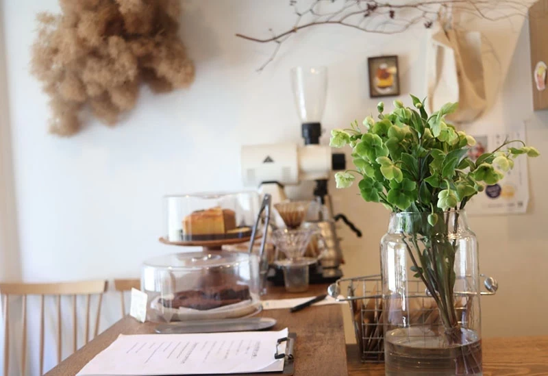 店內自家製甜點中,最受歡迎的是與淺焙咖啡相當契合、口感滑順的巴斯克起司蛋糕。此外,也可將附近人氣甜點店ACIDRACINE的蛋糕帶入店內,搭配香醇咖啡一同享用,享受更豐富的午後時光。