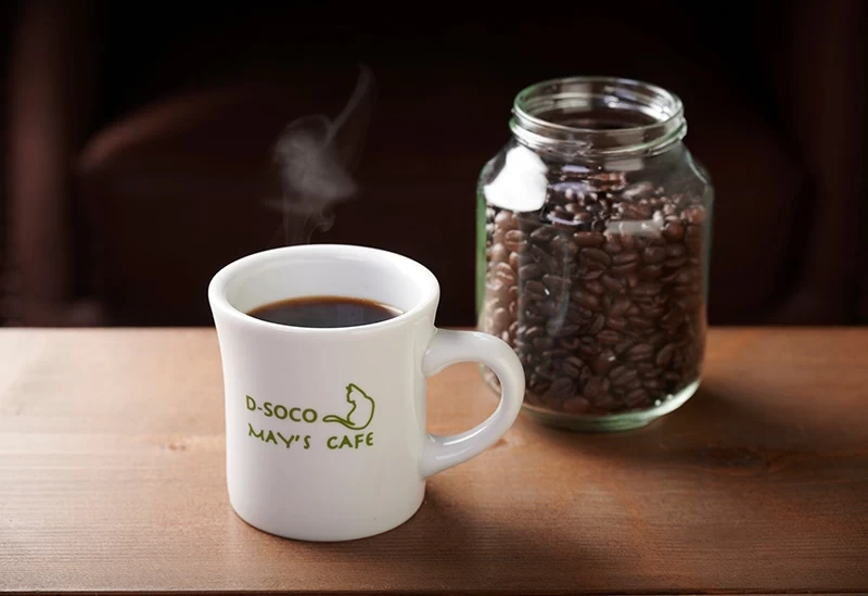 由倉庫改裝而成、充滿非日常氛圍的時尚空間而備受矚目的「D-soco May's Cafe」。以木質為主調的沉穩室內設計相當吸引人,寬敞的店內空間即使攜帶孩子同行,也能不必在意周遭、自在放鬆地度過時光。無論是久坐也不易感到疲累的沙發座椅,或是使用整片杉木打造的吧檯,都能感受到店家對舒適度的極致講究。