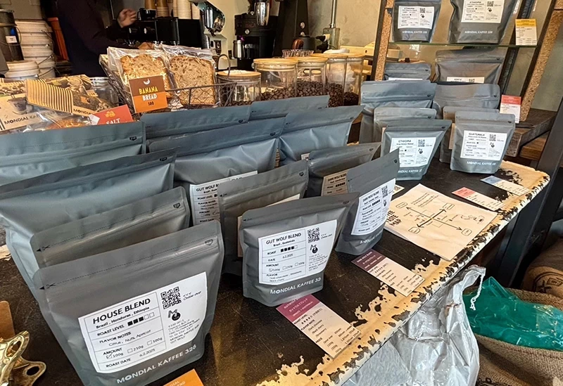 手沖咖啡的選擇相當豐富,包含以多款咖啡豆調配而成的兩種原創綜合配方,以及四款以上高品質的單一產地咖啡。由咖啡師繪製的可愛拉花同樣深受喜愛,店內也販售新鮮咖啡豆與各式咖啡相關周邊商品。