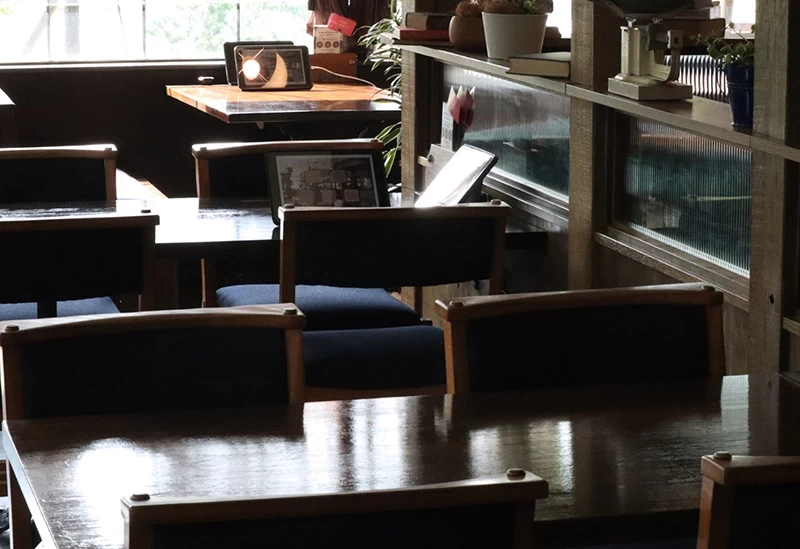 店內也陳列著由甜點師製作的各式甜點,其中包含人氣商品「濱田屋特製泡芙」。甜度恰到好處的甜點,與濱田屋綜合咖啡相當契合。自創業以來超過 40 年未曾改變的天然木桌椅,以及窗外映入眼簾的河岸綠意,共同營造出令人放鬆的懷舊氛圍,不妨在這樣的空間中,悠閒享受一段靜謐時光。