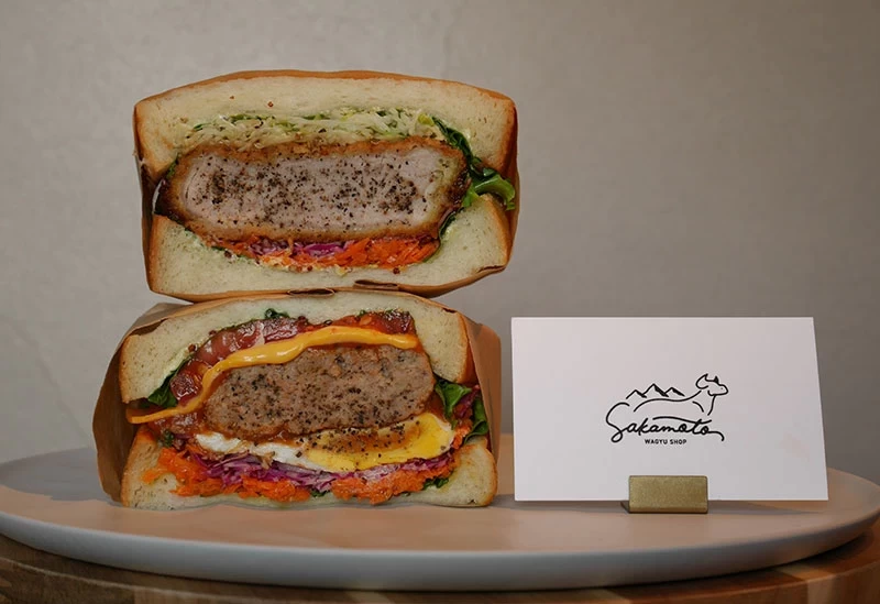 由大阪・堺市人氣精肉店阪本精肉店打造的「Wagyu shop Sakamoto」,是一處能品嚐到使用高級和牛與豬肉製作之三明治的時尚美食據點。最受歡迎的「菲力豬排三明治」,選用九州產柔嫩的豬菲力厚切炸製,搭配能襯托肉香的特製醬汁,份量十足、令人滿足。