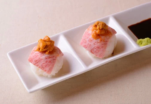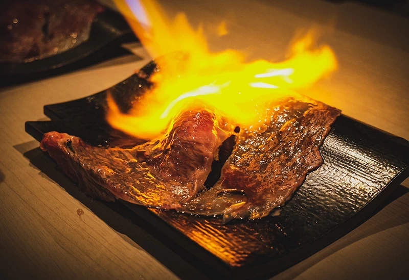 從 JR 琵琶湖線「大津站」或京阪電鐵京津線「上榮町站」步行約 5 分鐘,就能抵達這間主打滋賀引以為傲的近江牛、氛圍沈穩的肉料理專門店。近江牛以細緻的肉質與甘甜的油脂聞名,這裡以恰到好處的「微熟」方式呈現,讓人能完整品味食材本身的鮮甜與層次。店內也有許多只有在這裡才能品嘗到的特色料理,如「牛慎蕎麥麵」、「肉茶泡飯」 等深受喜愛的招牌。料理在餐檯前以噴槍炙燒的畫面更是一大亮點,視覺與香氣都令人食指大動。