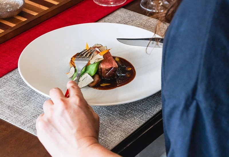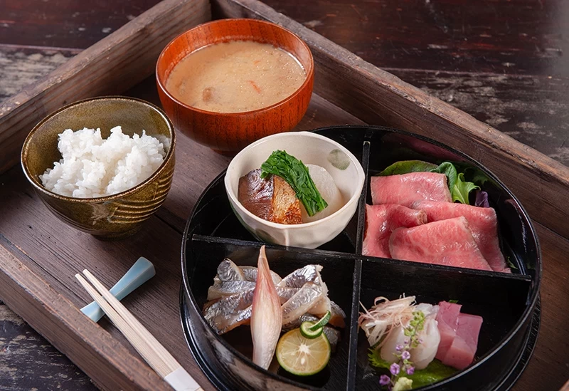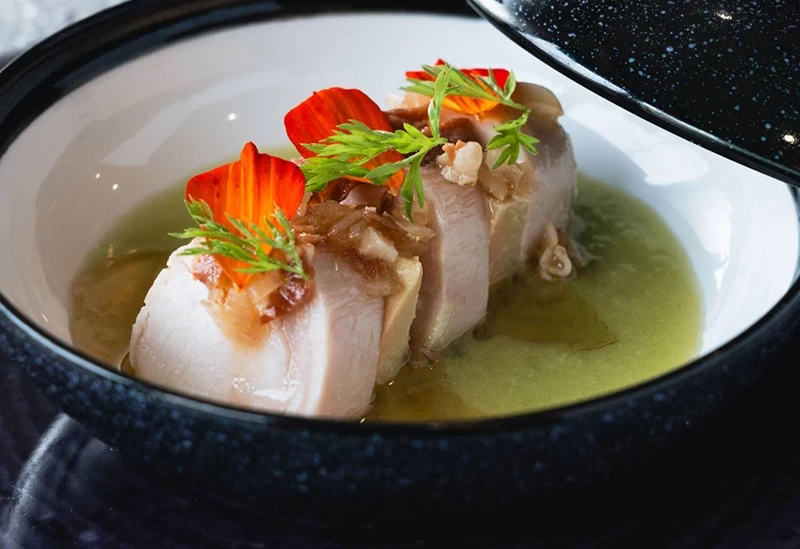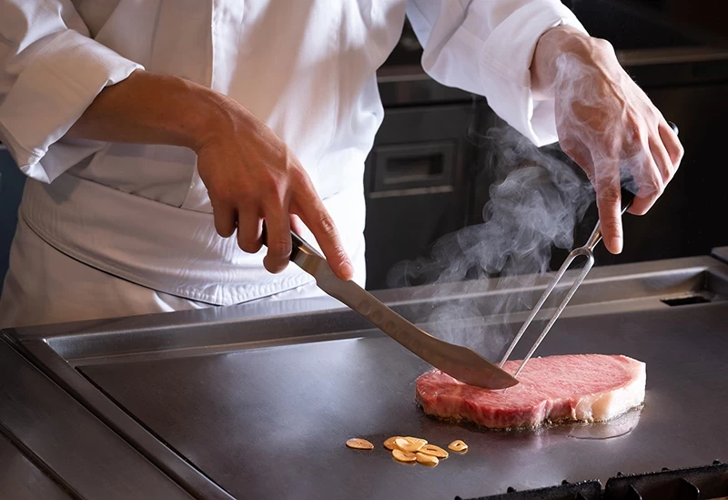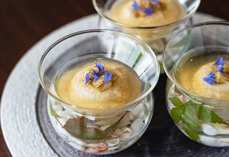 從 JR 彥根站步行約 7 分鐘即可抵達的「La Cuisine 槐」,是一家融合全國高級食材與在地食材的時尚法式割烹餐廳。在這裡,能以套餐形式品嘗海膽、鮑魚、伊勢龍蝦、近江牛等奢華食材所打造的料理。「Espoir」套餐中,主廚會依照客人的喜好,在吧台前現場烹調,呈現專屬的餐點。店內還有深受歡迎的「鐵板燒道場」,讓客人能實際挑戰火焰 flambé、現烤活龍蝦等互動式體驗。不僅能品味料理,更能親自參與烹調過程,為旅程留下難忘且特別的晚餐時光。