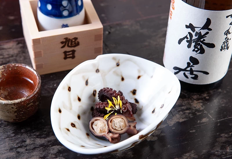 以滋賀縣食材製作的創作料理,與日本酒有著絕佳搭配。無論是「限定酒 かくれ蔵 藤居」、或是「杜氏之舞 純米大吟釀」等講究的酒款,都能在這裡一邊品味、一邊度過一個屬於成人的悠然夜晚。