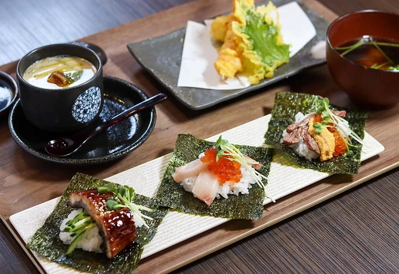 從 JR 近江八幡站步行約 14 分鐘即可抵達的「手巻き寿司専門店 びわ寿し」,是一家堅持地產地消、使用滋賀縣產米、醋、醬油製作手卷壽司的店家。推薦必點的「奢華手卷」,以近江牛、海膽、鮭魚卵等豪華食材製作,每一口都能感受到滿滿的鮮味,是份量與滿足感兼具的人氣料理。此外,店內也備有多款適合搭配壽司的滋賀地酒,如吟釀酒「六瓢箪」、地瓜燒酎「琵琶之譽」等,非常適合作為喜歡品酒的情侶享用。不妨在近江八幡,來一場以地酒與在地食材交織而成的成熟系壽司晚餐吧。