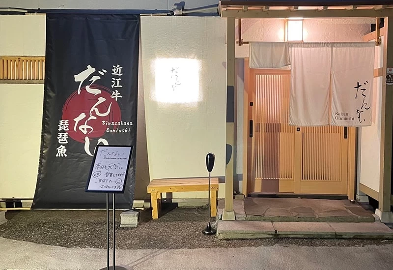 從 JR 近江八幡站步行約 7 分鐘即可抵達的「だんない 琵琶魚・近江牛」,是一間帶著滿滿在地情感、以「將滋賀的美味推向全國」為理念而開設的餐廳。店家以「用滋賀的肉與魚,搭配滋賀的好清酒,一次品味滋賀的全部美味」為概念,並積極投入地方創生與地域貢獻。