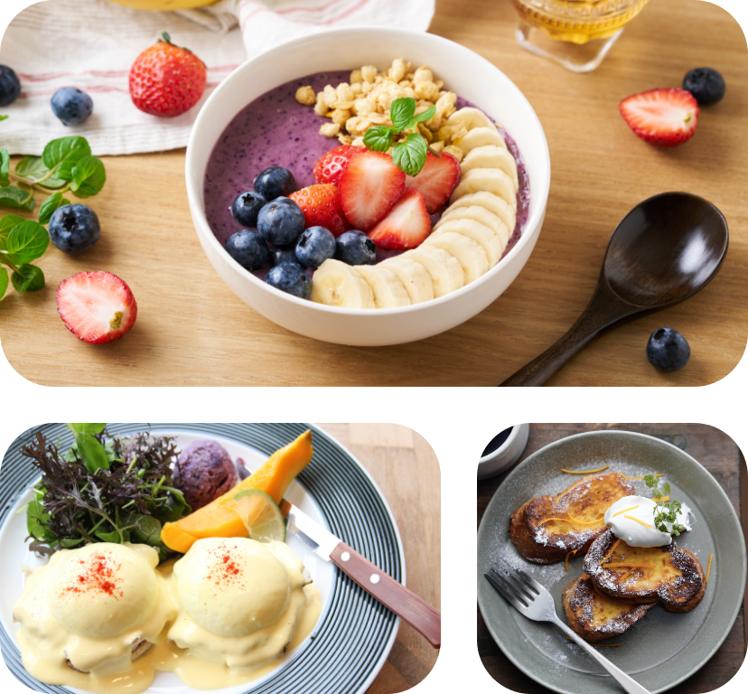 如果想在時尚氛圍中悠閒享用早餐,推薦到咖啡館體驗他們的晨間套餐。經典款是由蛋料理搭配培根或香腸組成的「美式早餐」,不過近年來,也有越來越多主打異國風味的選擇登場。像是以鬆餅、法式吐司、厚鬆餅為主角的早午餐拼盤,或是來自夏威夷的班尼迪克蛋、巴西莓碗等,不僅擺盤精緻、色彩繽紛,也讓人從早晨就感受置身海外的氛圍感。