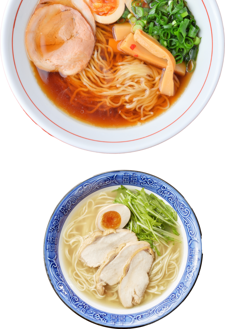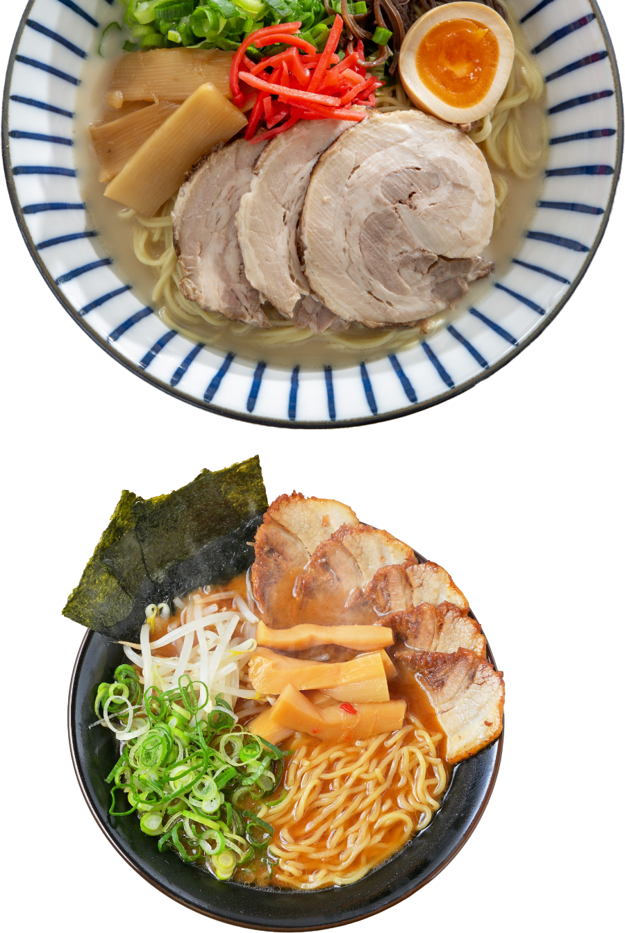 拉麵的麵條依店家而異,形狀與口感各有特色。豚骨或鹽味湯頭最適合細麵,若追求扎實的嚼勁則推薦粗麵,而味噌湯頭則與捲麵最為相配。經過精心設計、為了與湯頭完美契合而製作的自家製麵,擁有只有在該店才能品嚐到的獨一無二口感與風味。