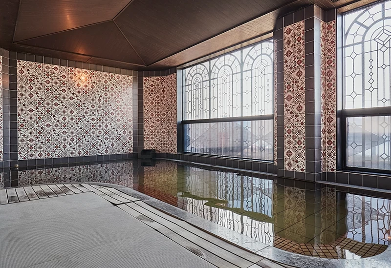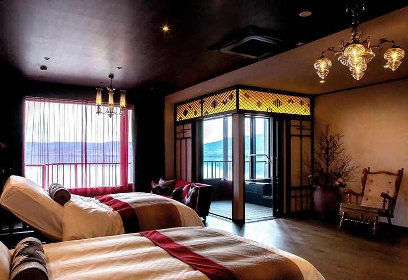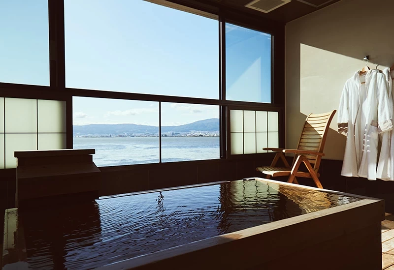 這是一間融合日本傳統美學與歐洲優雅 Art Deco 風格室內設計、洋溢著非日常氛圍的溫泉旅宿。鋪設磁磚的大浴場引入溫度較為溫和的「美翠」源泉,能讓人悠閒地長時間泡湯、徹底放鬆身心。無論是在浴池中或客房內,都能一覽諏訪湖全景,其中最受歡迎的是附設露天溫泉的客房。晚餐則可品嚐將信州人長年傳承的「美湖膳」加以改良的日式會席料理,為旅程增添一份精緻風味。