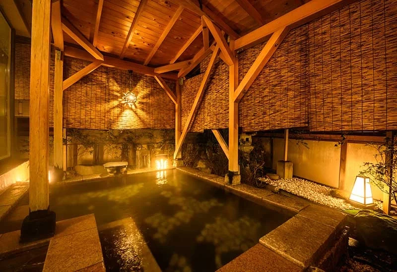 這是一間位於被譽為信州最古老溫泉之一的別所溫泉、創業超過 150 年的老字號旅館。館內可享受多樣化的泡湯體驗,包括 100% 源泉掛流的露天溫泉、以陰陽圖樣為特色、視覺印象深刻的露天溫泉,以及室內湯池與三溫暖等設施。餐食方面提供精緻的會席料理,以「信州 Premium 牛」為主菜,還能品嚐到伊勢龍蝦、魚翅等高級食材,也是入住的一大樂趣。透過傳統且細膩的款待,讓情侶能度過一段高品質、難忘的約會時光。