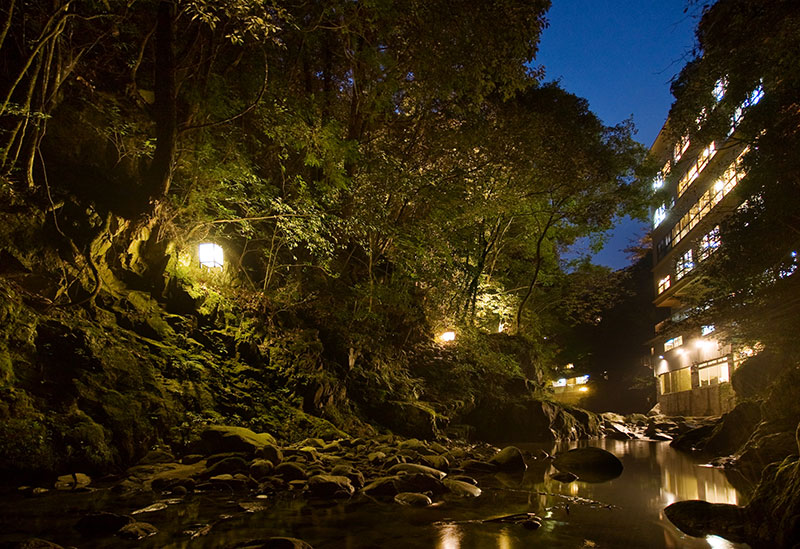 西瀨戶自動車道今治IC開車約20分鐘,位於今治與松山之間山谷中的溫泉旅館。坐擁木地川的潺潺流水和小鳥的歌聲,環境自然優美。在「美賀登」,舊時懷舊的和室齊全。部分客房設有按摩椅,還有可享受鈍川溫泉浴的客房。盡情享受旅館美味的料理和溫泉,放鬆身心解疲勞。