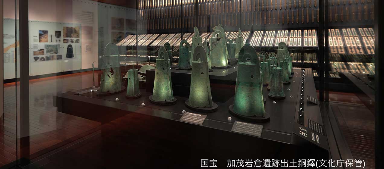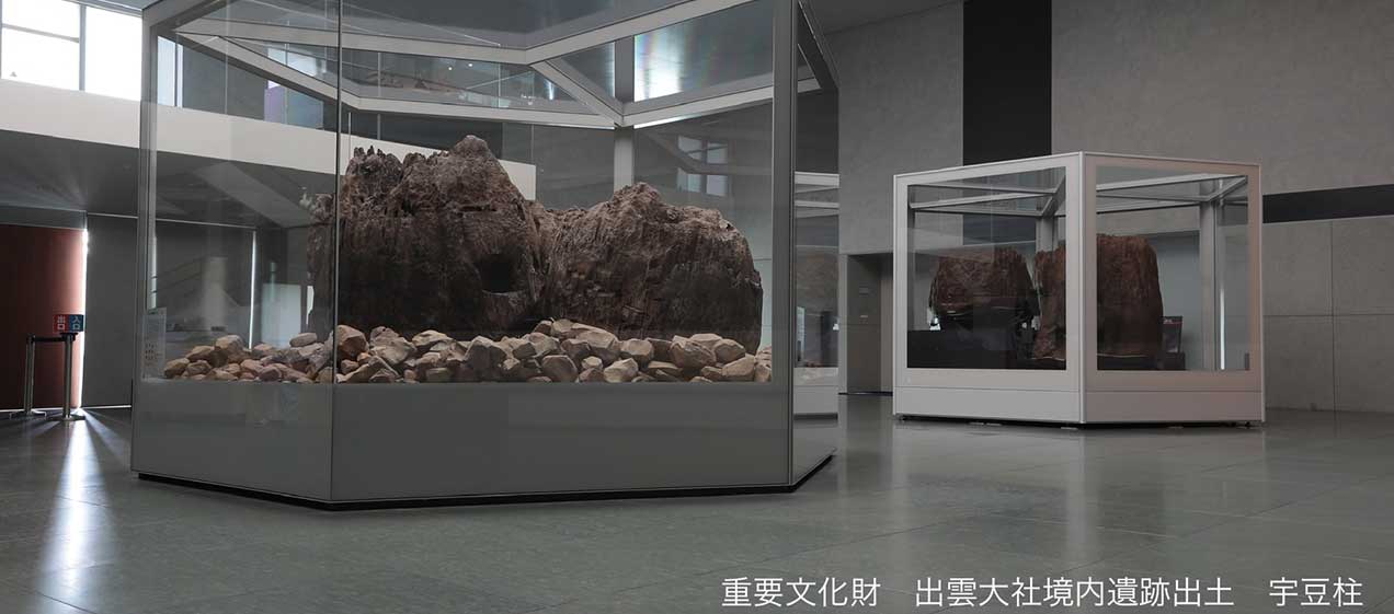 「宇豆柱(うづばしら(Udubashira))」是在2000年從出雲大社境內遺跡出土的展品,證明了出雲大社是巨大神殿。請近距離體驗其壯大的規模。此外,還有在荒神谷遺跡出土的彌生時代銅劍358把等,另一個看點是迫力十足的國寶419件。