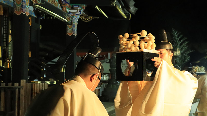 在新穀中製作團子並奉納的五穀成熟感謝祭「團碁祭」。也被稱為「八石八斗團子祭」。這是一個不供奉神酒僅奉上團子的獨特祭典,據說也是為了慰勞在大饗祭(11月30日舉行的新穀感謝神事)中擔任接待的比賣神所舉行的祭典。神事結束後,團子會分給參拜者,傳說吃了團子後能一年無病息災。受到這個祭典的影響,香取神宮的參道上熱鬧地有各種販售團子伴手禮的店鋪。