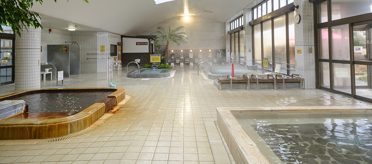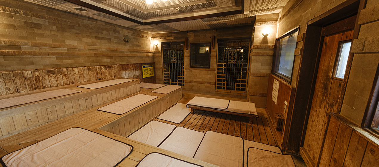「天然溫泉露天岩風呂」及「酒桶風呂」等種類豐富的浴室中悠閒放鬆,利用「遠紅外線桑拿」及「鹽桑拿」可體驗舒爽的“整頓”感受。在溫暖的石板上躺下大量流汗的「岩盤浴方案(入湯+岩盤浴)」中,讓身體從內芯開始暖和起來。