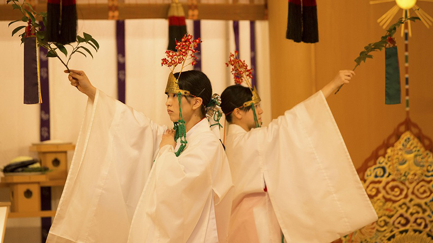 擁有約1500年歷史的神社所舉行的「神前結婚式」,是一項體現日本傳統家庭美德與精神的歷史性儀式。由主祭神天兒屋根命(あめのこやねのみこと)所象徵的誓約與夫婦圓滿的信仰為基礎,以「多度両宮御印祭祈年の儀」的形式舉行。神職透過祝詞與神樂,為新人進行祈禱與導引。儀式場地包括多度神社本宮、別宮・一目連神社、攝社、末社等場所,並依據新人的心願安排參拜動線,從正殿、夫婦岩、白馬神馬、社殿、馬道等處進行參拜,使婚禮充滿神聖意義。此外,騎馬奉告式如「上げ馬神事」也象徵著勇往直前的祈願,為婚姻帶來延續幸福的強大祝福。這場儀式也包含了家內安全、夫婦圓滿、五穀豐收等傳統信仰,並傳承對天兒屋根命的深厚信仰之情。