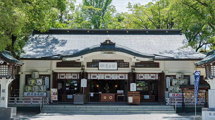 - 神社座落於熊本城內的櫨方會所遺址,能近距離仰望熊本城天守閣。境內樹齡悠久的樟樹點綴其中,靜靜守護前來參拜的信眾。