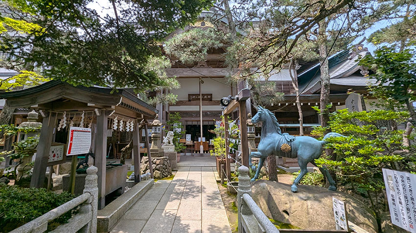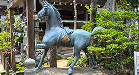 在古代祭典中,載著神職人員的馬是不可或缺的存在。隨著時代變遷,馬雖不再實際參與祭典,但牠深受人們喜愛的身影,仍以「神馬」石像的形式供奉在籤詩台旁,至今依舊承擔著將人們心願傳達給神明的角色。