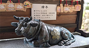 本殿旁鎮座著合祀的「柏崎天滿宮」,境內還有被視為菅原道真公神使、亦是天滿宮信仰象徵的「撫牛」(神牛)石像。據說輕撫石像即可祈求學業成就、考試合格、身體健康或病痛痊癒等心願。