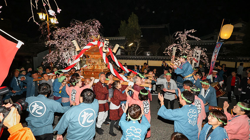 一年之中,伊奈波神社舉行各式各樣與日本美麗四季以及人們人生相伴的活動。其中最重要的祭事,是每年四月第一個週六舉行的「神幸祭」以及四月五日的「例祭」,合稱為「岐阜祭」,是岐阜市春天最具代表性的盛事。「神幸祭」時,載有伊奈波大神御靈的華麗神轎,會隨隊伍繞行岐阜街道,象徵神明為地方帶來幸福與繁榮。隨後還有華美的山車巡遊、機關人偶奉納表演,夜晚更有神轎遊行與煙火施放,將祭典推向最高潮。這些傳統與現代能量交織的儀式,被指定為岐阜市無形民俗文化財。