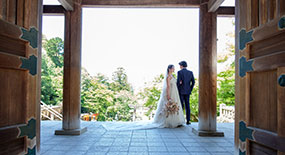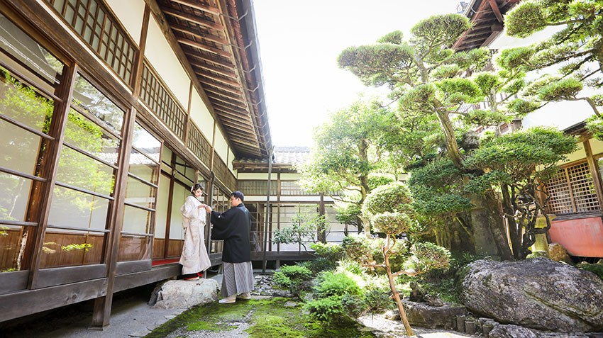在御神前,以誠摯之心為兩人的新起點舉行婚禮儀式。由於神社所祭祀的御祭神──五十瓊敷入彥命(いにしきいりひこのみこと)與渟熨斗姬命(ぬのしひめのみこと)本就是夫婦,因此被認為能庇佑戀愛圓滿、夫妻和睦以及安產,也使得此處成為立下永恆誓約的神前婚禮場地而廣受歡迎。於供奉神德豐厚的伊奈波大神鎮座之社舉行的神前式,不僅是為兩人門出獻上祝福,更是讓人再度銘記日本美麗的傳統,以及代代相承的家族羈絆,這是一場莊嚴而溫馨的儀式。