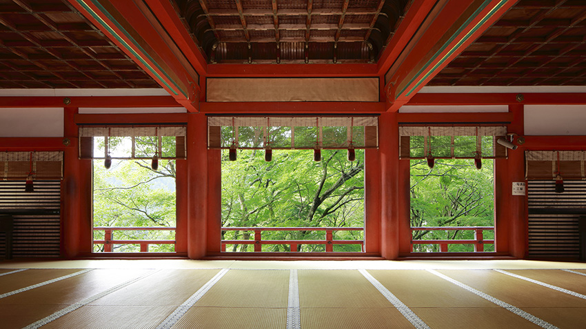 「談山神社」境內坐落著眾多歷史建築,包括本殿、拜殿、樓門、東寶庫等鮮豔朱漆的社殿群,皆被指定為國家重要文化財。其中最具代表性的,便是象徵神社的木造十三重塔。相傳此塔由御祭神藤原鎌足的長子──定慧和尚於天武天皇在位的678年,為祈父親冥福而建,擁有超過千年的歷史。現存的塔則是在室町時代1532年(享祿5年)重建,被認為是世界上唯一的木造十三重塔。本殿則建於701年(大寶元年),並於江戶時代1850年(嘉永3年)依三間社隅木入春日造形式重建。其漆塗與極彩色的華麗設計,在各處細節展現工藝之美,據說也對後世的社殿建築風格帶來深遠影響。建築藝術之美、深厚的歷史背景,以及歷經悠久歲月依舊不變的自然,共同營造出莊嚴而神聖的信仰之地。