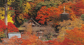 位於奈良縣櫻井市多武峰的「談山神社」,據傳是在飛鳥時代,中大兄皇子(後來的天智天皇)與中臣鎌足(後來的藤原鎌足)商議政治改革──大化革新的計畫之地。神社境內散布著多座歷史建築,包括被譽為世界唯一的木造十三重塔,以及本殿、拜殿等,皆被指定為國家重要文化財。這座被群山環抱的神社,四季各有不同的自然美景可賞:春天有櫻花盛放,初夏有新綠清新,而最令人讚嘆的,是秋季滿山紅葉映襯朱漆十三重塔的絕美景色。來此不妨放慢腳步,漫步於歷史的舞台,度過一段追思時光流轉的悠然時光。