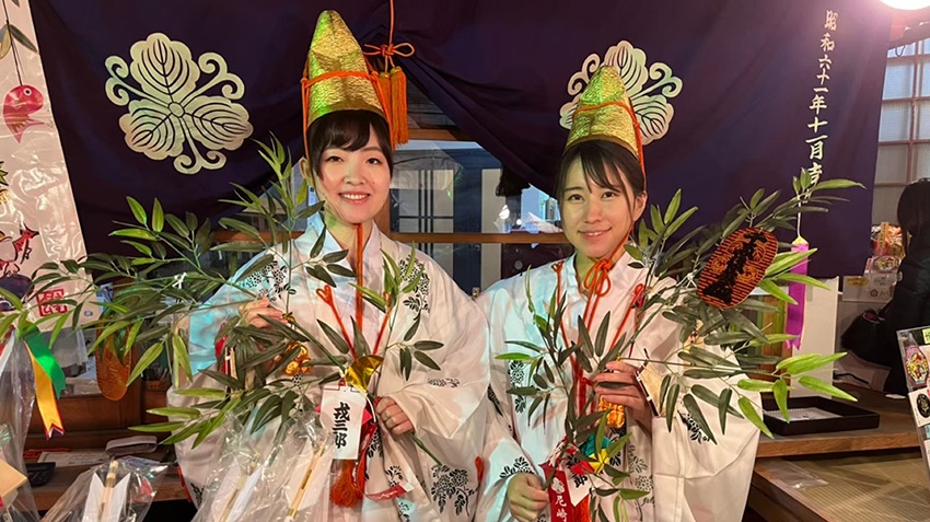 每年1月9日(宵惠比壽)、10日(本惠比壽)、11日(殘福)連續三天舉行的「十日惠比壽大祭」,是「尼崎惠比壽神社」一年之中最盛大的祭典。期間境內攤位林立、熱鬧非凡,聚集了祈求新一年商業繁盛、家宅平安、事業順利、開運招福的參拜者。「商賣興隆,把福笹帶回家!」的吶喊聲此起彼落,伴隨著福娘與巫女的祈禱,參拜者可在御神前領受「福笹」,此乃能招來福氣的吉祥物。生機盎然、四季不枯的青笹,象徵著「不衰敗」與「生意不斷」,自古被視為繁榮與持續的象徵。華麗的「福笹」上裝飾有大判、小判、倉、吉兆、繪馬、御札等各式吉祥物,帶回後據說能迎來更好的運勢。