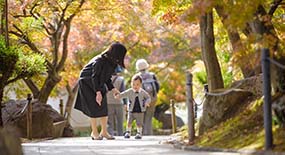 境內設有無障礙通道,從停車場到祈禱所皆能以嬰兒車移動前往參拜。「蓮華亭」備有寬敞的兒童遊戲空間,「紫雲殿」則設有哺乳室與可讓嬰兒休息的候室,全家皆能安心地在境內共度時光。