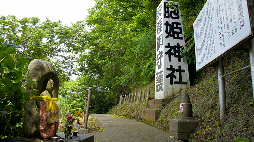 胞姬神社位於距北陸自動車道米山交流道與JR笠島站各約6分鐘車程的地方,自古以來便以安產、求子之神聞名,深受全國人們信仰。相傳1186年(文治2年),源義經一行為躲避風暴在此地登陸時,其正室忽然臨盆,並在臨時搭建的產所順利誕下嫡子。作為感謝安產的回禮,家臣武藏坊弁慶將嬰兒的胎盤和羊膜等胞衣奉納於此,並在此祭祀源氏的氏神「諏訪神」和「八幡神」,這也成為了此神社的起源。如今神社周邊仍留有許多相關遺跡,至今依然吸引縣內外眾多民眾前來祈求求子、安產以及子女平安成長。