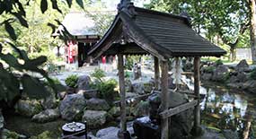境內湧出的御靈泉,一直維持著能夠汲取清澈水源的狀態,並且為了方便帶回家的人,也有販售「御神水瓶」。天照大神從左眼誕生,月讀命則從右眼誕生。清潔雙眼是淨除自身所帶穢氣的行為。