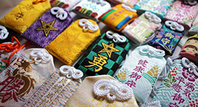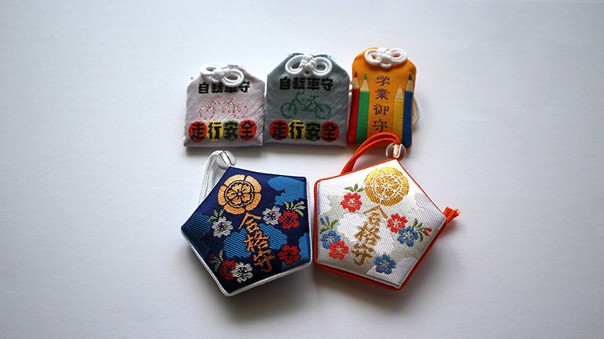 我們販售各式各樣的護身符。因參拜者的需求眾多,種類也逐漸增加。設計從經典款到稀有款應有盡有。請珍惜這些蘊含祈願心意的護身符。我們也備有繪馬和祈福符。