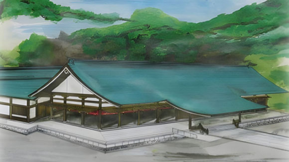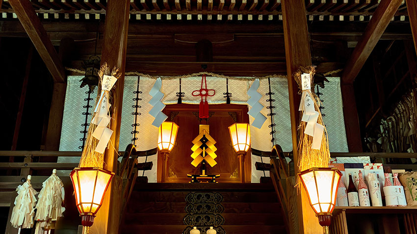 - 聖武天皇的勅命下,陰陽道的祖先・吉備眞備盡力發揮陰陽道,將社殿建造朝向西南(背鬼門),以阻止國家的災難流動。