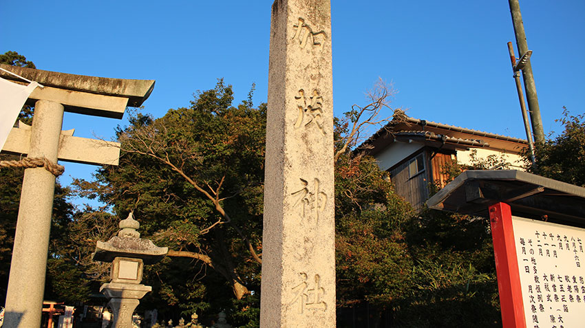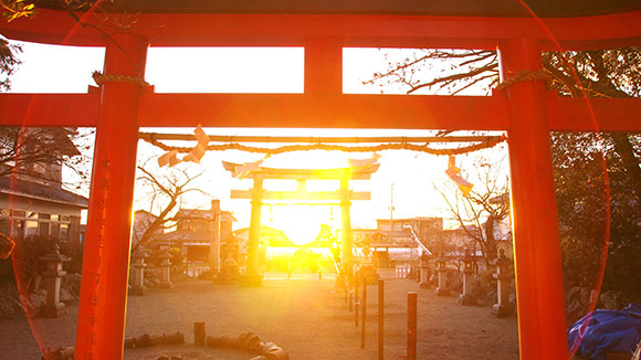 陰陽道被靈活運用,社殿朝向西南方(背鬼門)以封鎖災難的通路。另外,每年11月中旬到2月中旬之間,太陽會在鳥居的正下方落下,因此來自全國的人們會前來觀賞鳥居與太陽重合的瞬間。賀茂神社由奈良時代應聖武天皇之命,由陰陽道之祖吉備真備親自選定並創建,至今仍由吉備真備的後裔岡田家守護著。