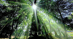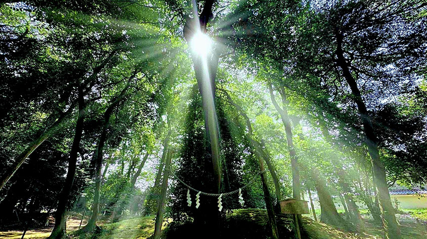 曾有一次雷擊,樹幹中心被燒毀只剩表皮,但這棵靈木‧樫木仍然存活並繼續生長。據說它具有延年益壽、回歸原點的力量,且通過其中空洞的地方可帶來受孕的福德。神道信仰中,有我們在日常生活中重生的觀念。若能獲得神恩回歸原點,便能珍惜身邊有緣之人。