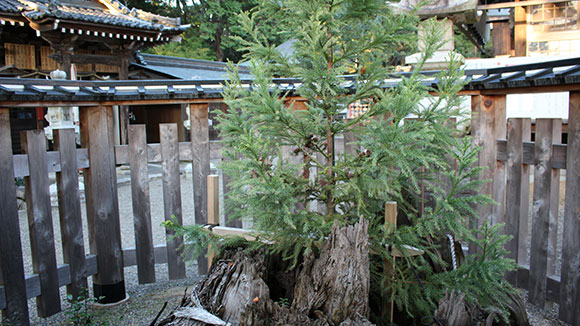 被朱紅色籬笆圍繞著的非常具有靈氣的靈木·連理真榊。在三棵生長的真榊中,有兩棵從中途合併為一棵,並且江戶時代的文獻中也記載了這是賀茂大神靈威的顯現。因為在良緣、必要的緣分以及各種事物的“結合”上有神恩,因此請務必前來參拜。祈求姻緣、受孕、安產、夫妻和睦等,各地人們紛紛前來參拜。